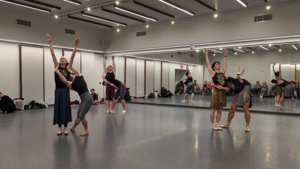 Trock Flock rehearsal guests watch a pre-tour run of METAL GARDEN.