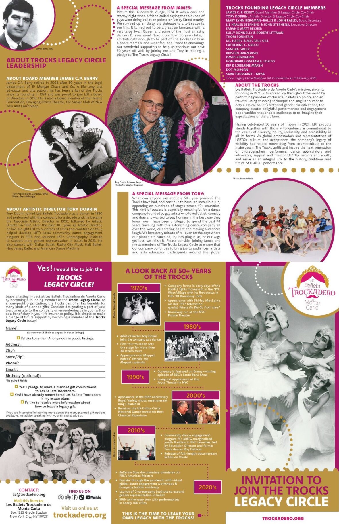 • Lifetime recognition on the Trocks’ website and in select printed programs